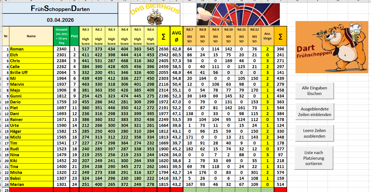 Bierhaus Frühschoppen-Darten: Endstand