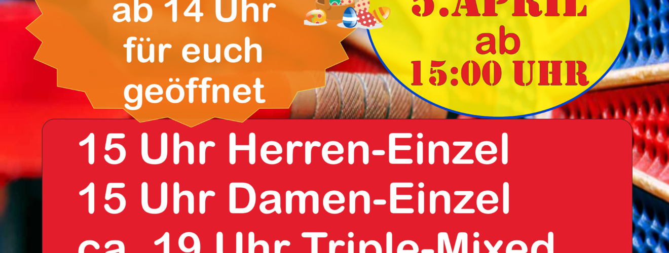 Herren- und Damen-Einzel & Triple-Mixed 15:00 – 23:59So. 5. April 2026 iCal GoogleKompletten Kalender ansehen